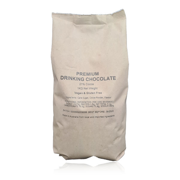 21% Cocoa, 1kg net Weight, Vegan & Gluten-Free. Made in Australia from local and imported ingredients.